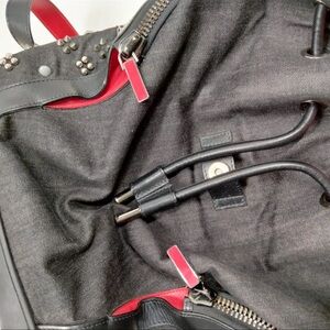 Stylish and durable, this studded black and red Louboutin backpack is perfect for everyday use. Its sleek design and bold colors make it a standout accessory.