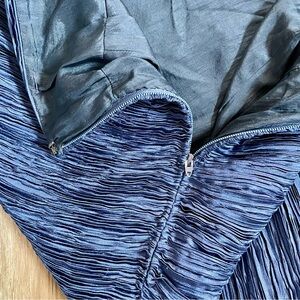 Elegant and timeless, this vintage Mary McFadden couture pencil skirt showcases the designer’s signature plissé pleated charmeuse fabric, known for its ability to hold pleats while offering ease of movement and a beautiful drape over the body.