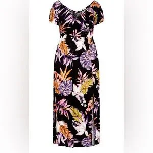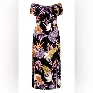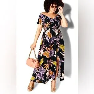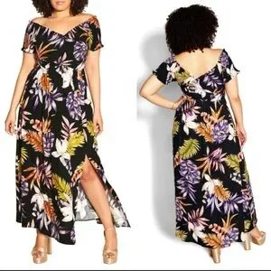 City Chic Skye Off Shoulder Print Maxi Dress - black size 14