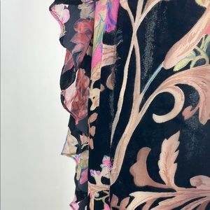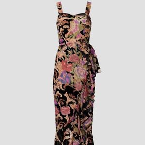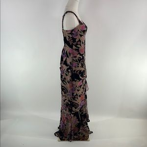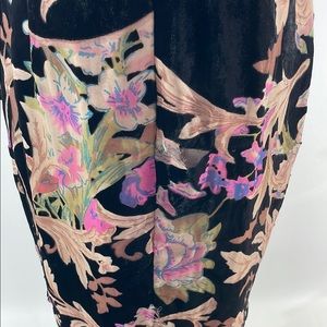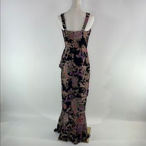Black floral jacquard (100% Polyester). Sheath. Sleeveless. Strapless. Back zipper closure. 52" from shoulder to hemline. Imported.