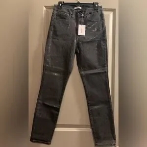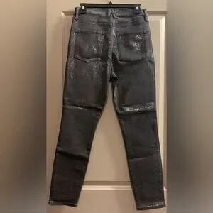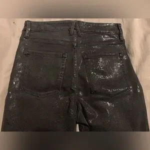 Good American Good Waist Jeans Gray Metallic Coated Snakeskin Skinny Size 8/29