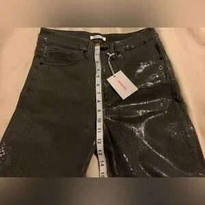Good American Good Waist Jeans– Gray Metallic Coated Snakeskin – Size 8/29 – NWT