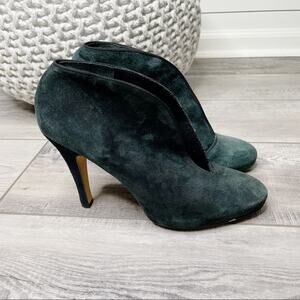 Daniblack Crucial Suede Split Vamp Stiletto Ankle Booties Dark Green Size 8.5M