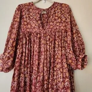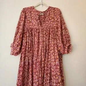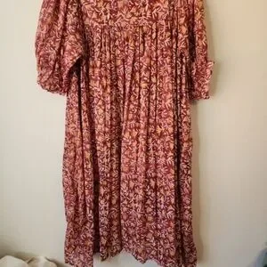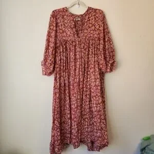 Daughters of India Women Kyra Midi Dress XL Floral Print Baloon Sleeve Bohemian