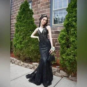 This was my prom dress, gorgeous, so sparkly, and it was tailored to give you that snatch your looking for. ONLY WORED ONCE! Great quality
