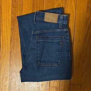 Medium dark indigo with subtle authentic wear pattern.