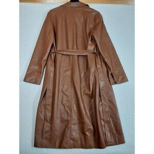 ZARA Brown Faux Leather Belted Long Trench Coat Sz M