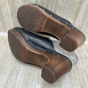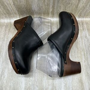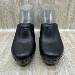 UGG Abbie Black Leather Slip On Heeled Mules Womens 7 Clogs Shoes Chunky Y2K