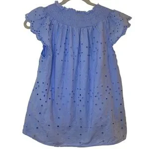 LOFT blue eyelet smocked neck blouse
