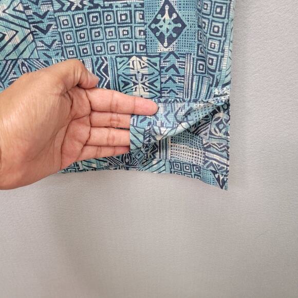 Blue green made in Hawaii short sleeve shirt. Size M, pre-owned in great used condition with minor signs of wear. See my other listings for more Tori Richard shirts available and bundle for a better deal.