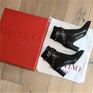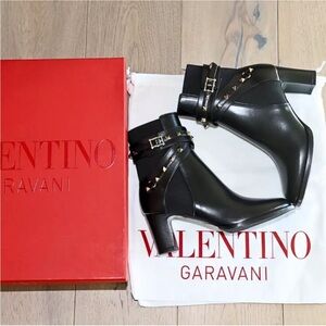 Valentino Garavani Rockstud Buckle Ankle Booties Black Size 38 EU (US 8), Boots