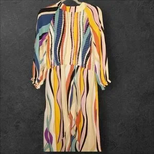 Elevate your wardrobe with this stunning multicolor striped dress, perfect for any season! Featuring a playful blend of vibrant colors, this dress is designed to make you stand out. The long sleeves and high neckline add elegance while maintaining a fun and stylish look.