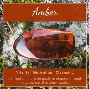 Amber stone measures approximately 1 inch tall by 0.5 inches wide.