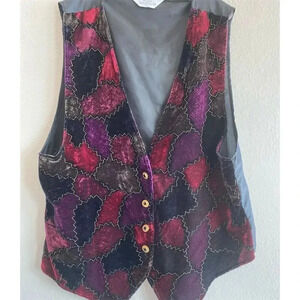 Add a touch of vintage charm to your winter wardrobe with the Blair Boutique Velvet Vest. This multicolor patchwork vest, featuring intricate embroidery and button accents, is perfect for holiday gatherings or cocktail parties. The soft velvet outer shell and cozy polyester lining ensure warmth and comfort, while the sleeveless design offers versatility. Whether you're dressing up for a festive occasion or adding flair to a casual outfit, this vest is a stylish choice. In pre-owned condition, it carries a unique history and character.