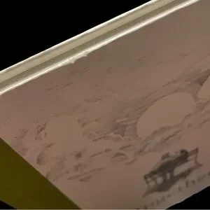 Thin hardback book. Not a whole lot to actually read but I bought it to look at the interesting illustrations which are like the cover. No torn pages, writing, dog ears, etc. Minor damage- see pics. Last chance will be donating May 1st.