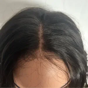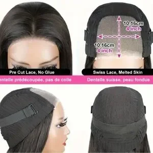 Beautiful Soft ‘Human Hair ‘ wig. Black very soft. 4x4 lace closure. Elastic band for stability. The hair along the front of the lace is approximately 12 in stretched the rest is layered and so varies in length. The hair at the nape of the neck is approximately 8 in stretched. If you are looking for a lightweight wig this is the one for you.