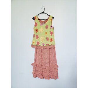 F L Malik Outfit Set Women's L Tank Sz M Maxi Skirt Rayon Ruffle Floral Hippie