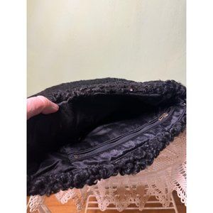 Antique 1920's Curly Black Wool Hand Muff Purse Clutch