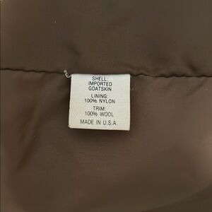 Shell: imported goatskin, lining: 100% nylon, trim: 100% Wool