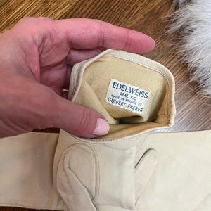 Vintage Lord & Taylor Edelweiss Real Kid Leather & Silk Gloves in Ivory - Size 7