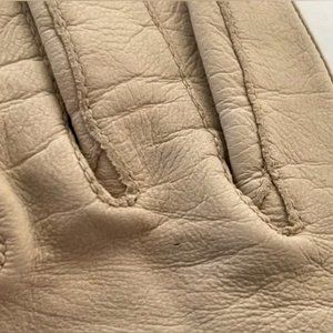 In line with their age, there is some wear on these gloves throughout with some of the fingers tips roughed up and two very small slits in leather (not really visible to the naked eye, see photos). Of note: there is NO stretch in these. Make sure these will fit you if you're planning to wear.