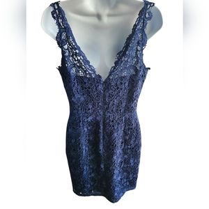 Aidan Mattox Navy Double-V Lace Cocktail Dress Size 6