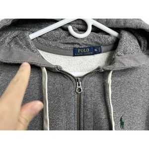 Polo Ralph Lauren Hoodie Men's XL Fleece Lined Full-Zip Heather Gray Green Logo