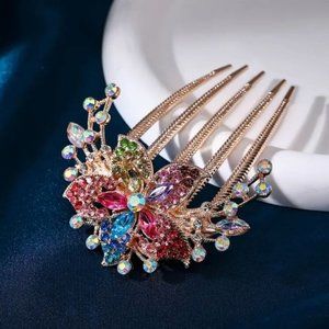 NEW Multicolor Crystal and Rhinestone Gold Hair Comb Accessory