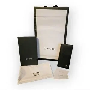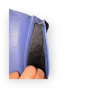 The interlocking Double G hardware is reimagined season after season, successfully demonstrating Gucci's way of connecting archival symbols to a modern aesthetic. The hardware is presented in silver resulting in small leather accessories for a contemporary wardrobe. This long wallet is presented in black leather exterior and stunning blue leather interior with multiple card slots and pockets.