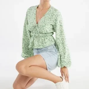 Brand new with tags JUSTFAB Long Sleeve Printed Woven Top.
