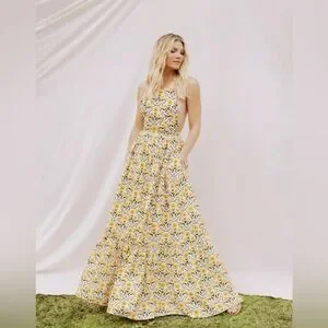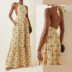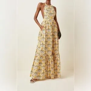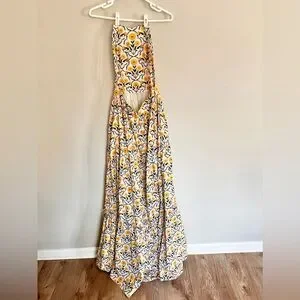 Agua by Agua Bendita Naranja Mimosa Halter Yellow Floral Maxi Dress Size S