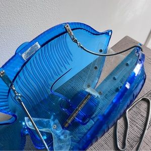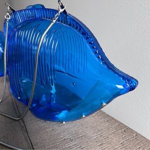 Rare aqua blue plexi fish clutch with metalic chain straps and magetic closure from Zara.