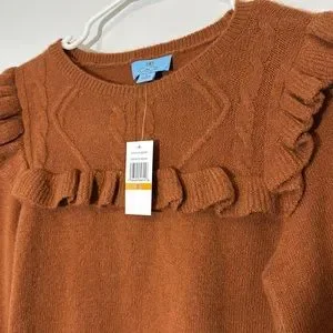 New Cece Burnt Orange Cable Knot Ruffle Sweater Women’s Size Small