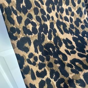 Spunky fit and flare leggings from Nasty Gal feature a cheetah print. They have an elastic waistband for comfort and a flared bottom. Wear them with a baby t-shirt! They’re bell-bottom style and come in size 4. Unfortunately, the material tag is missing. The inseam is approximately 31.5 inches. They’re in fabulous condition!
