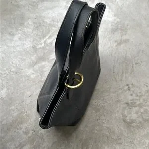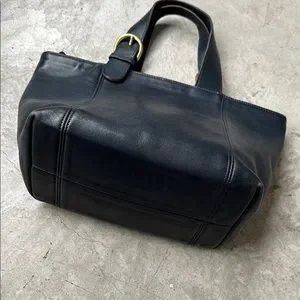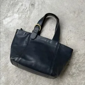 Classic navy leather tote bag with brass buckle accents. Perfect for everyday use.