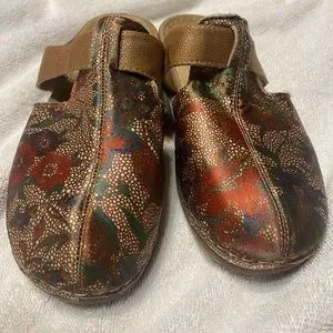 Stylish clogs with a vibrant floral pattern. Features a mix of colors for a unique look.