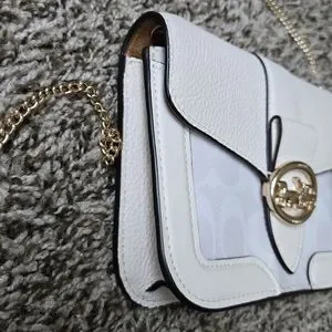 Coach Georgie Shoulder Bag Signature White Cream Light Pink
