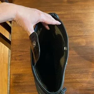 Vintage Brighton bucket bag. Black leather. Snap closure one zip pocket on the inside. There is a mark on the inside bottom of pocketbook see pictures.