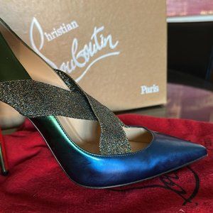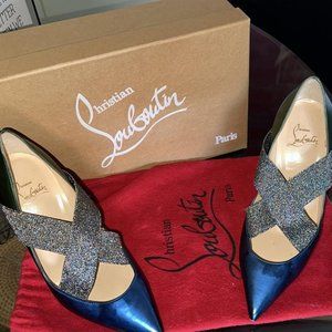 Sharpstagram crossover metallic patent leather pumps, size 7. Good condition- still have box and shoe bag. One of the more comfortable pairs of Louboutins I own, they have just sat in my closet for too long!