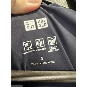 Uniqlo Women’s Down Puffer Coat Sz S Blue Goose Feather Mockneck Packable Hood