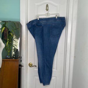 These Torrid Feel the Fit Lean Jeans in size 5XL are made of super soft denim with a stretchy, high-rise design. They feature a tapered style, elastic waist, and a 4-pocket design. The jeans have a 26.5-inch inseam and a slim fit, perfect for a comfortable and stylish look in various seasons. MATERIAL CONTENT: 65% Cotton, 20% Rayon, 13% Polyester, 2% Spandex. MEASUREMENTS: 41" Length, 52" 52" Waist (26" laying flat), 15" Rise, 26.5" Inseam, 12" Leg Holes.