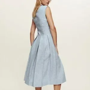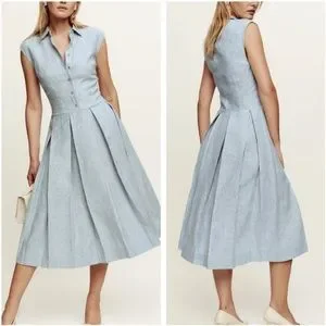 NEW Reformation Prim Linen Midi Dress - Blue White Stripes Casual