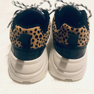 Qupid Womens Gold Black Lace Up Leopard Print Low Top Sneaker Shoes Size US 7