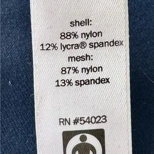 - 88% nylon, 12% Lycra spandex.