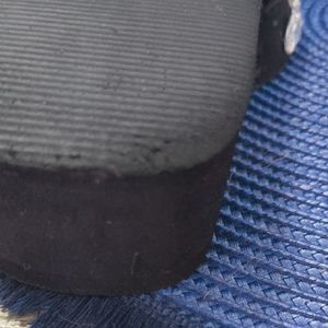 Stylish black flip flops adorned with sparkling rhinestones. Perfect for adding a touch of glamour to any outfit.