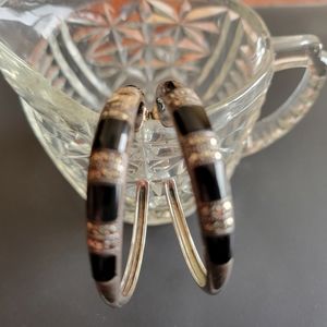 Vintage Onyx and Marcasite Sterling Silver hoop earrings.