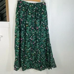 J. Crew Green Pleated Voile Maxi Skirt Resort Wear