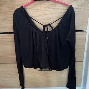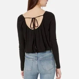 We The Free Bondi Blouson Black Crop Thermal Tie Back size Small Black