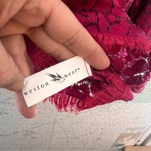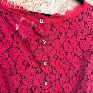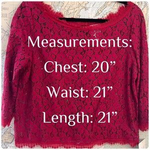 Women’s Julieanne W. Anthropologie Weston Wear Pink Sheer Lace 3/4 Sleeve Blouse Size M. Nee with tags. Floral lace pattern with trim. Boat neckline. Fabric is lightweight, sheer with some stretch to it. 3/4 length sleeves.