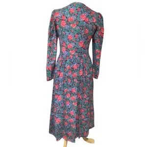 Vintage Laura Ashley button down puff sleeve drop waist floral midi dress sz 12